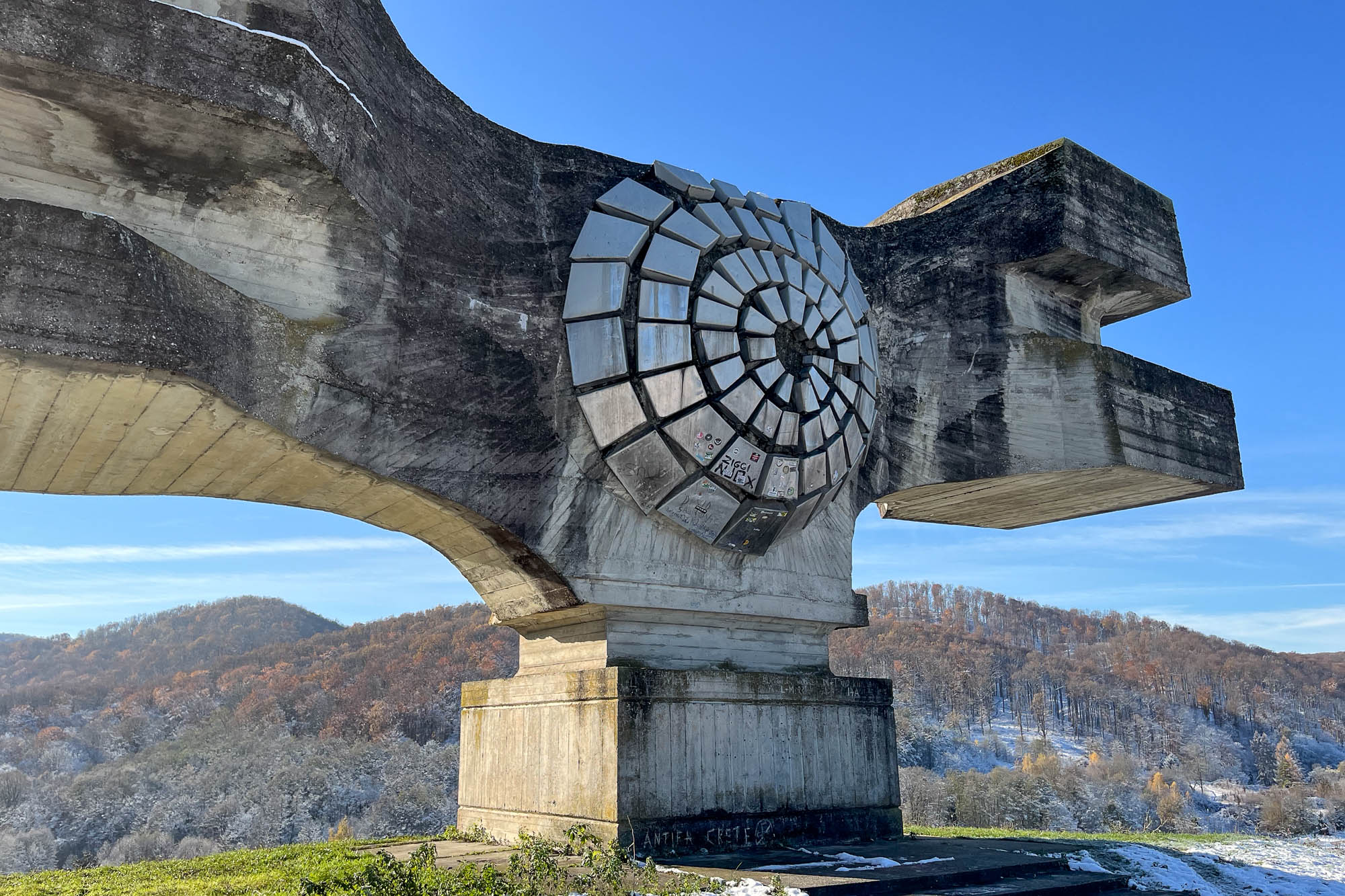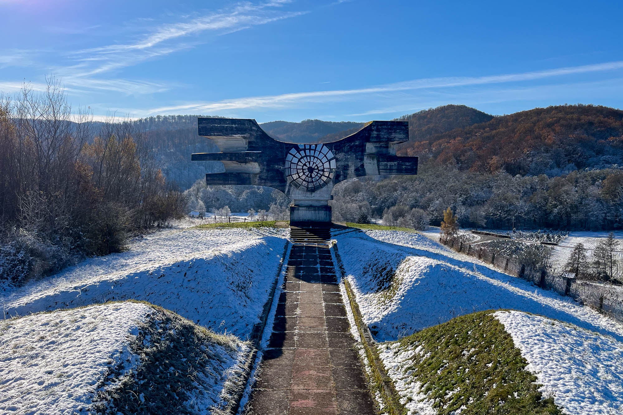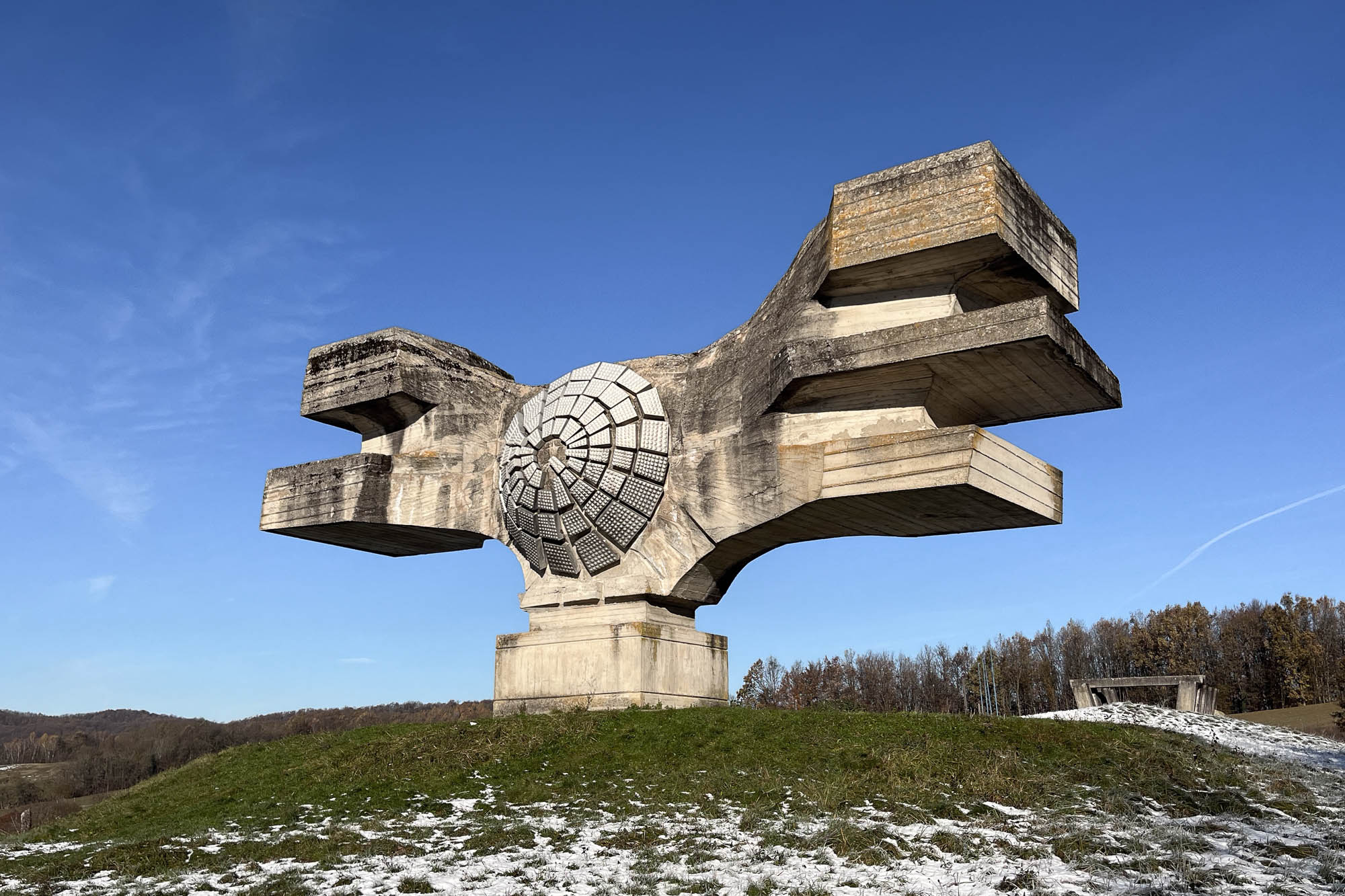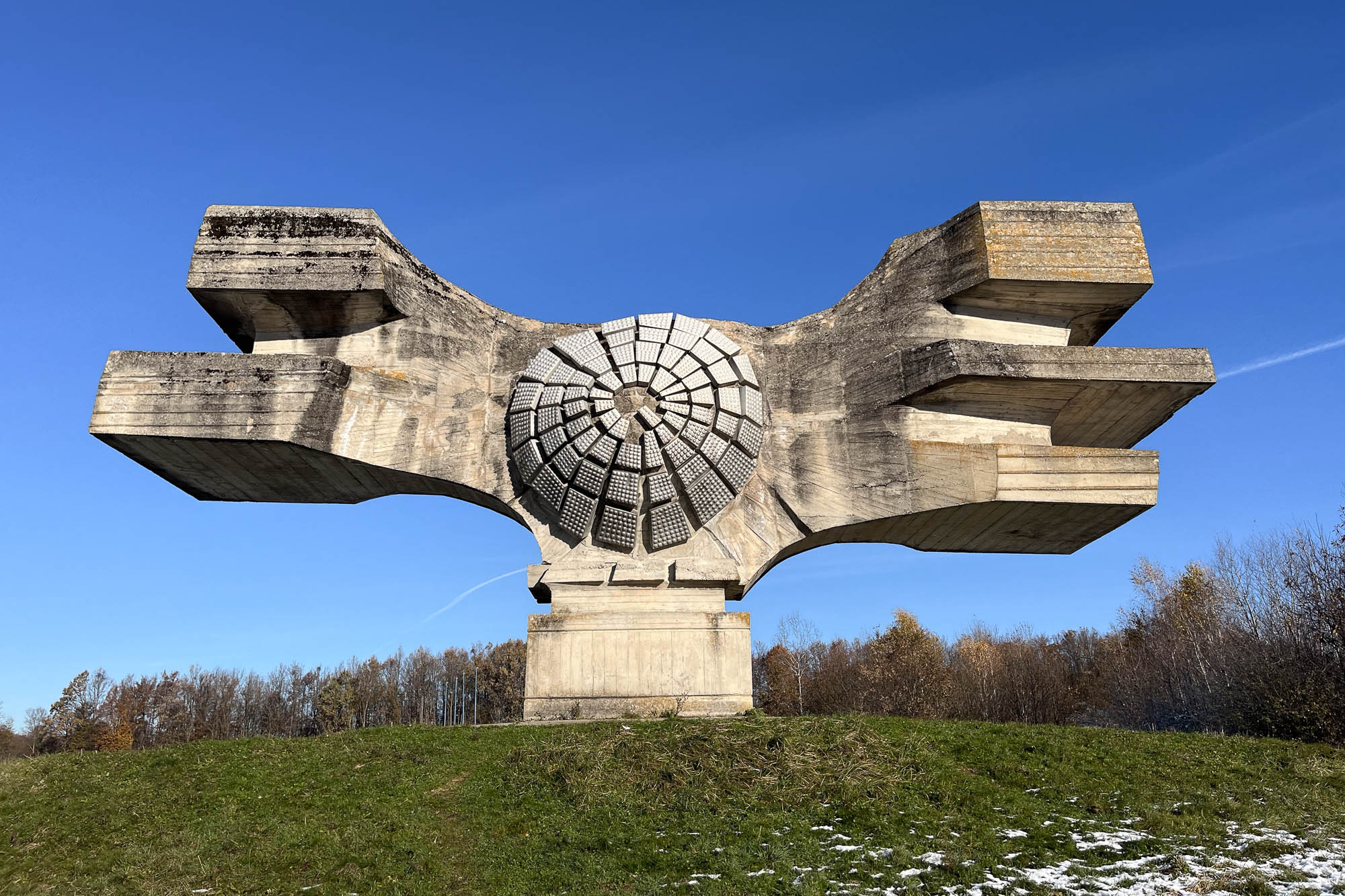 The monument's wing tips, five in total, symbolize the five republics of Yugoslavia and represent the Partisan resistance's 'wings of victory' over death and defeat during WWII.
