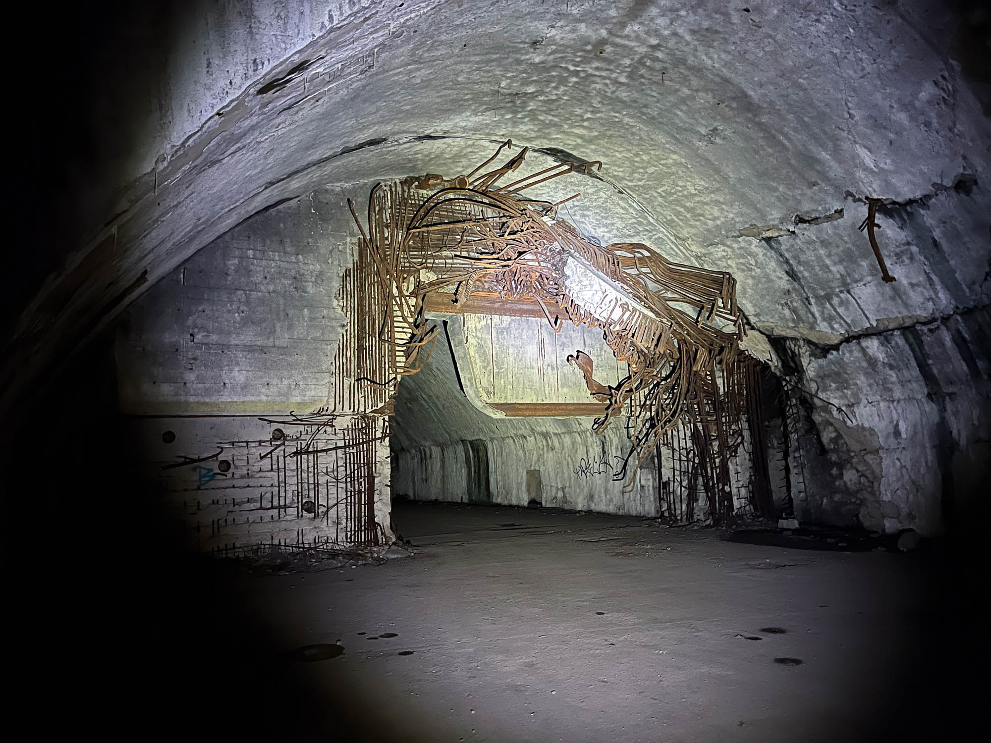 Blown up during retreat by the Military of Serbian Krajina in 1992, the explosion of 56 tons of explosives was reportedly felt from 20 kilometres away in the town Bihać. It is reported that the underground base burnt for 6 months. This destructive power can be seen first hand in the ripped apart meter thick bunker doors, leaving frayed steel rods in a jagged mess.