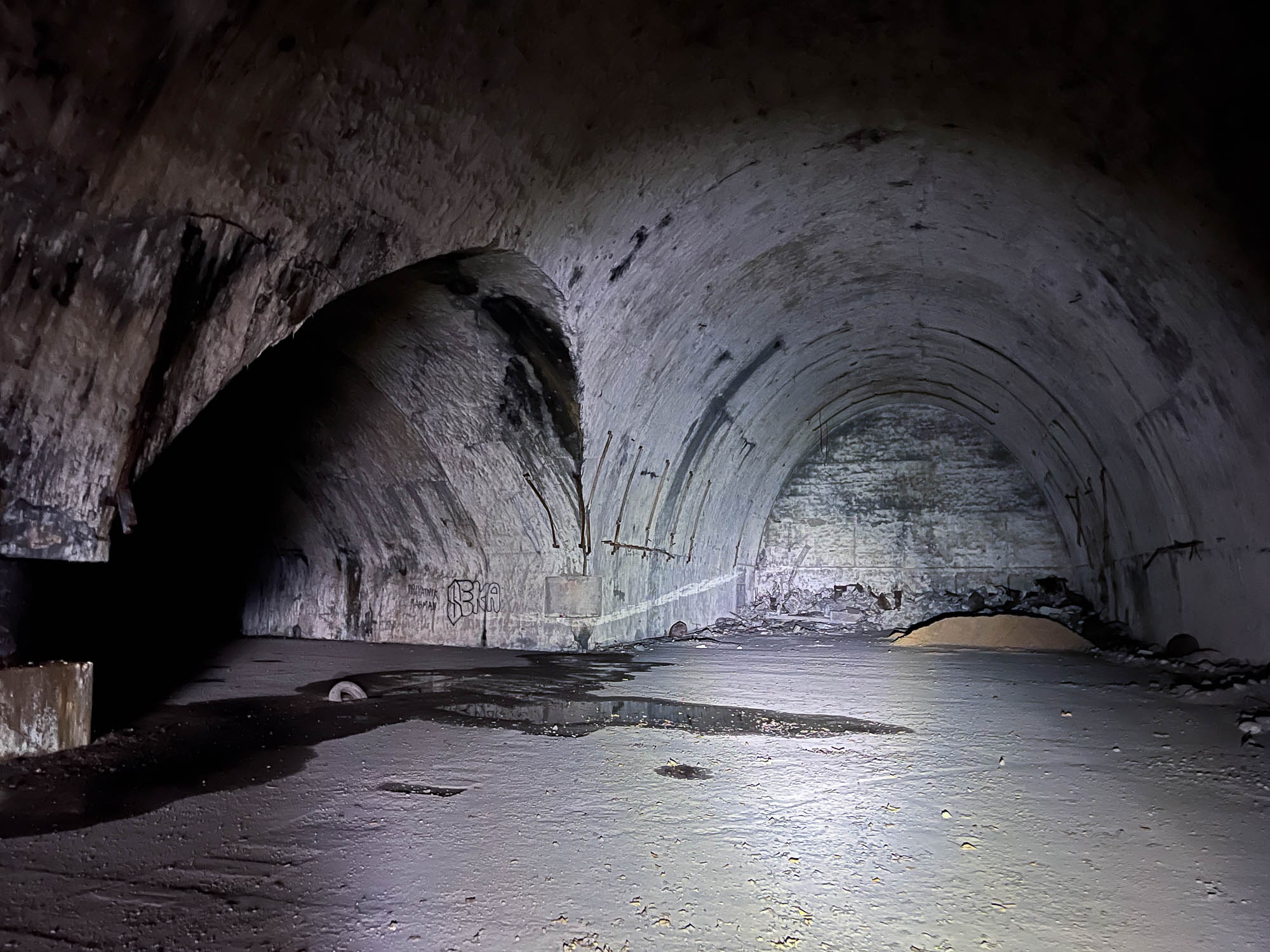 Today the tunnels are little more than a concrete shell—left dark and dusty. Four entrances make entry and exit easy, although the curve and corners of the tunnels pathways are deceptive, until you see light, you often don’t know if your going deeper into the mountain or on your way out.