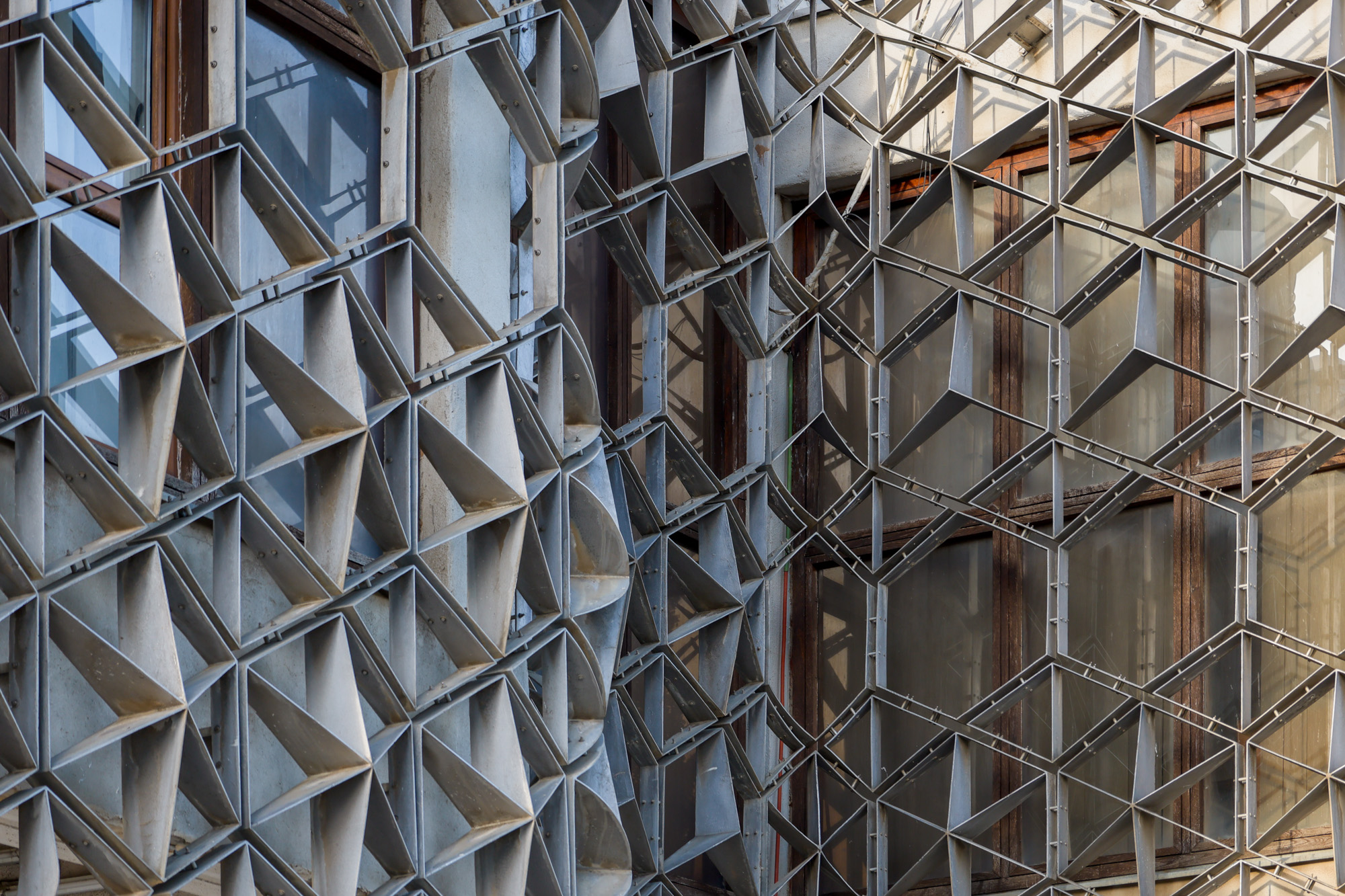 One of the building's most striking features is its hexagonal outer structure. This external latticework is visually distinctive, inspired by the region's well-known honey. The other notable element, the white domes, are inspired by Turkish hammams. These allow natural light to filter into the library, creating a well-lit, yet diffused, daytime reading environment.